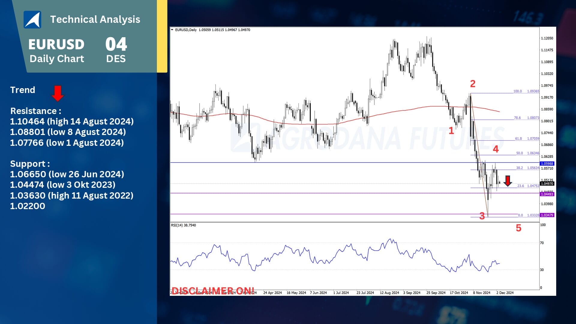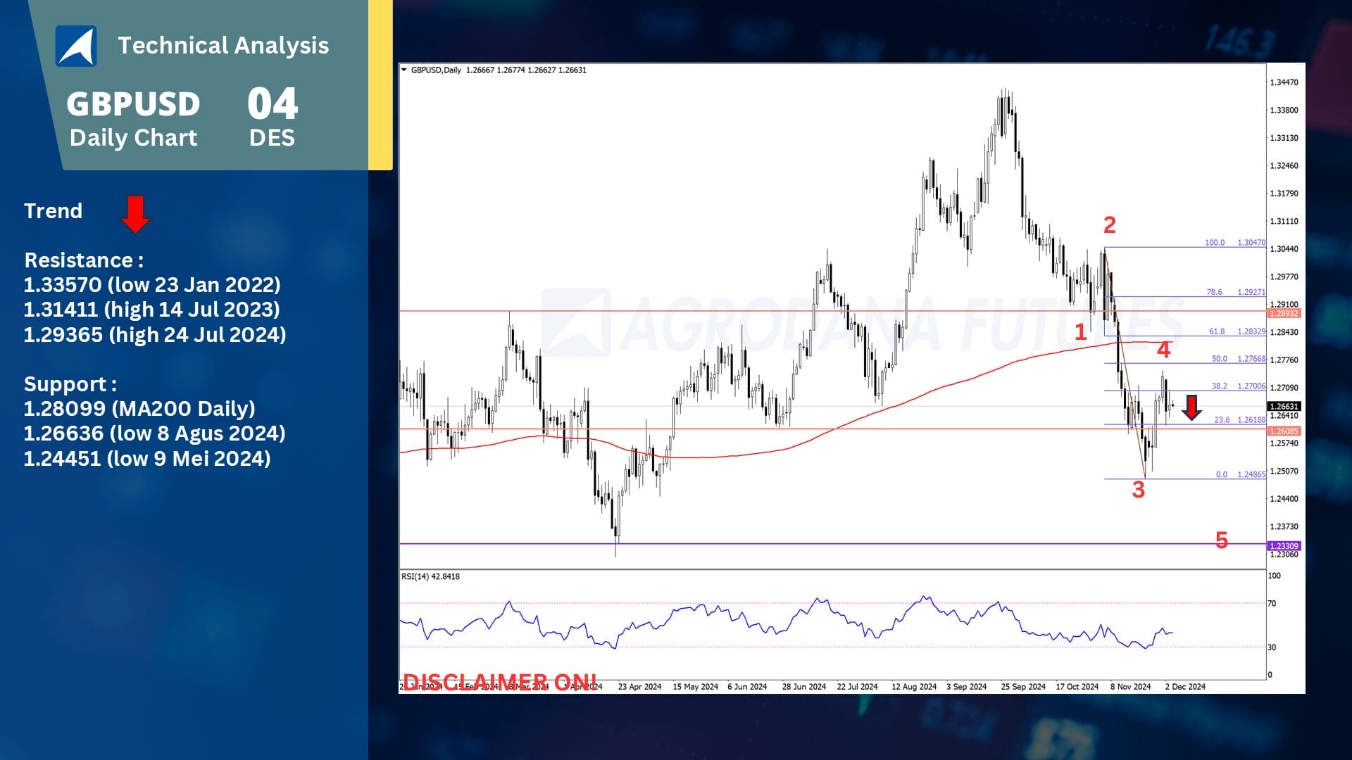 CHART TECHNICAL ANALYSIS EURUSD Suggest : SELL on RallyArea : 1.05000 – 1.05200Target : 1) 1.04400 2) 1.03800SL : 1.05800 Alternatif :Pertahankan/follow SELL jika tembus 1.04600Switch to BUY jika tembus 1.06000 CHART TECHNICAL ANALYSIS GBPUSD Suggest : SELL on RallyArea : 1.26600 – 1.26800Target : 1) 1.26000 2) 1.25400SL : 1.27400 Alternatif :Pertahankan/follow SELL jika […]