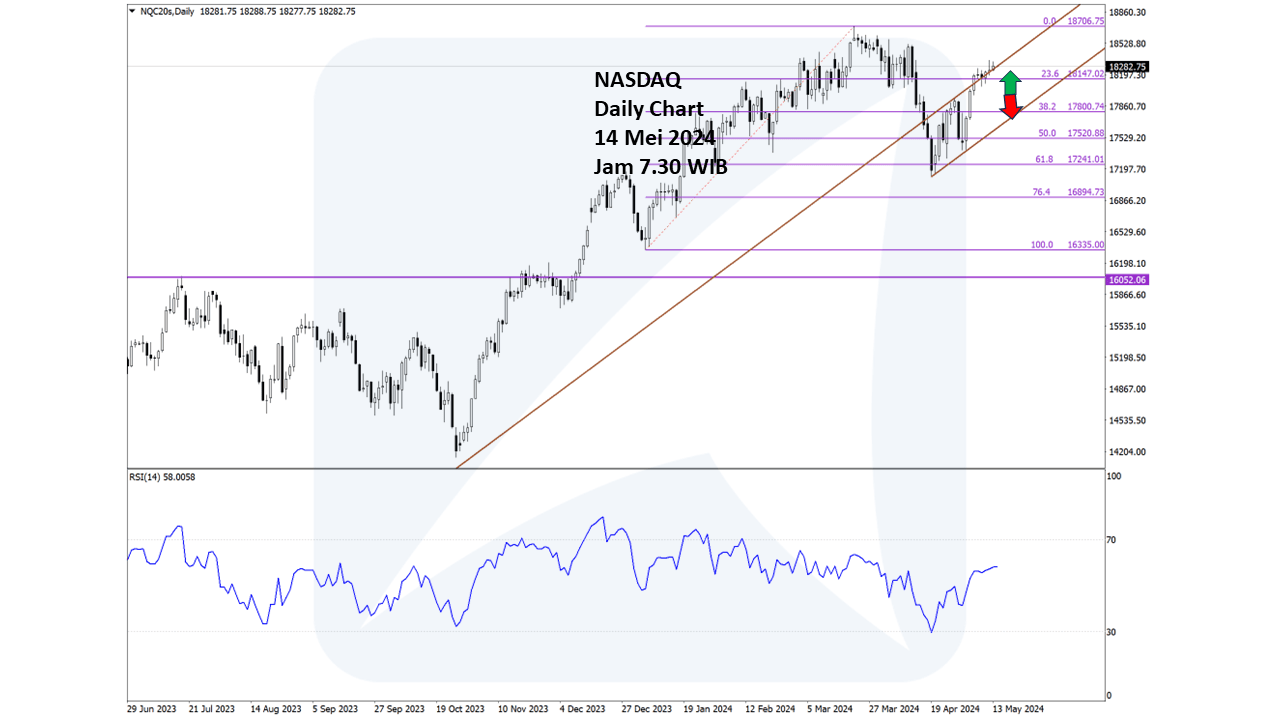 c. Potensi bearish terbuka jika tembus di bawah 17980.22 (FR 38.2%) -> pertahankan SELL - Pertahankan SELL jika tembus 17980 atau jika eskalasi geopolitik tiba-tiba kembali memanas (perhatikan perkembangan Israel -Hamas) !