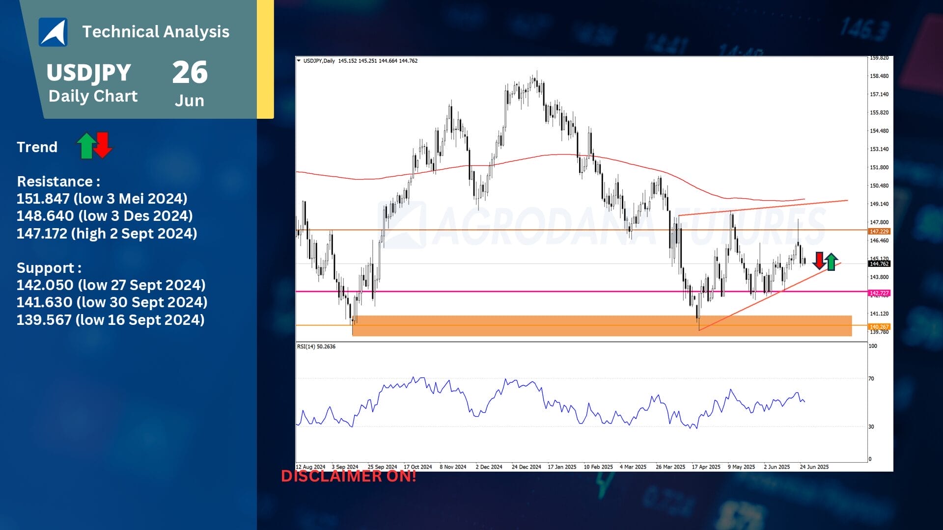 | Suggest : SELL on Rally Area : 145.300 – 145.500 Target : 1) 144.700 2) 144. 100 SL : 146.100 Alternatif : Pertahankan/Follow SELL jika tembus 144.300 Switch to BUY jika tembus 146.500 |
