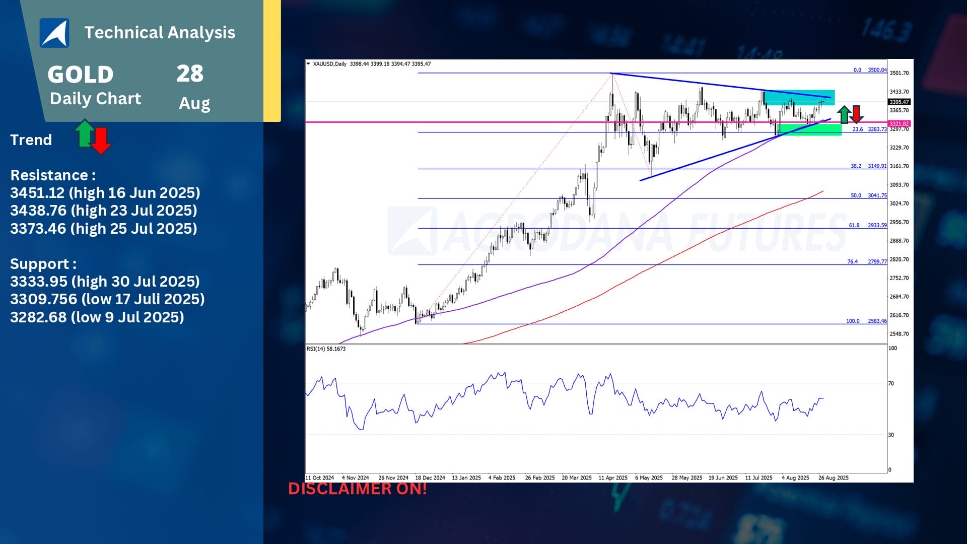 - * Masih ada ketidakpastian seputar pertemuan Putin dan Zelenskiy dan juga status pemecatan gubernur Fed Lisa Cook-> positif untuk emas, menahan penurunan terlalu tajam