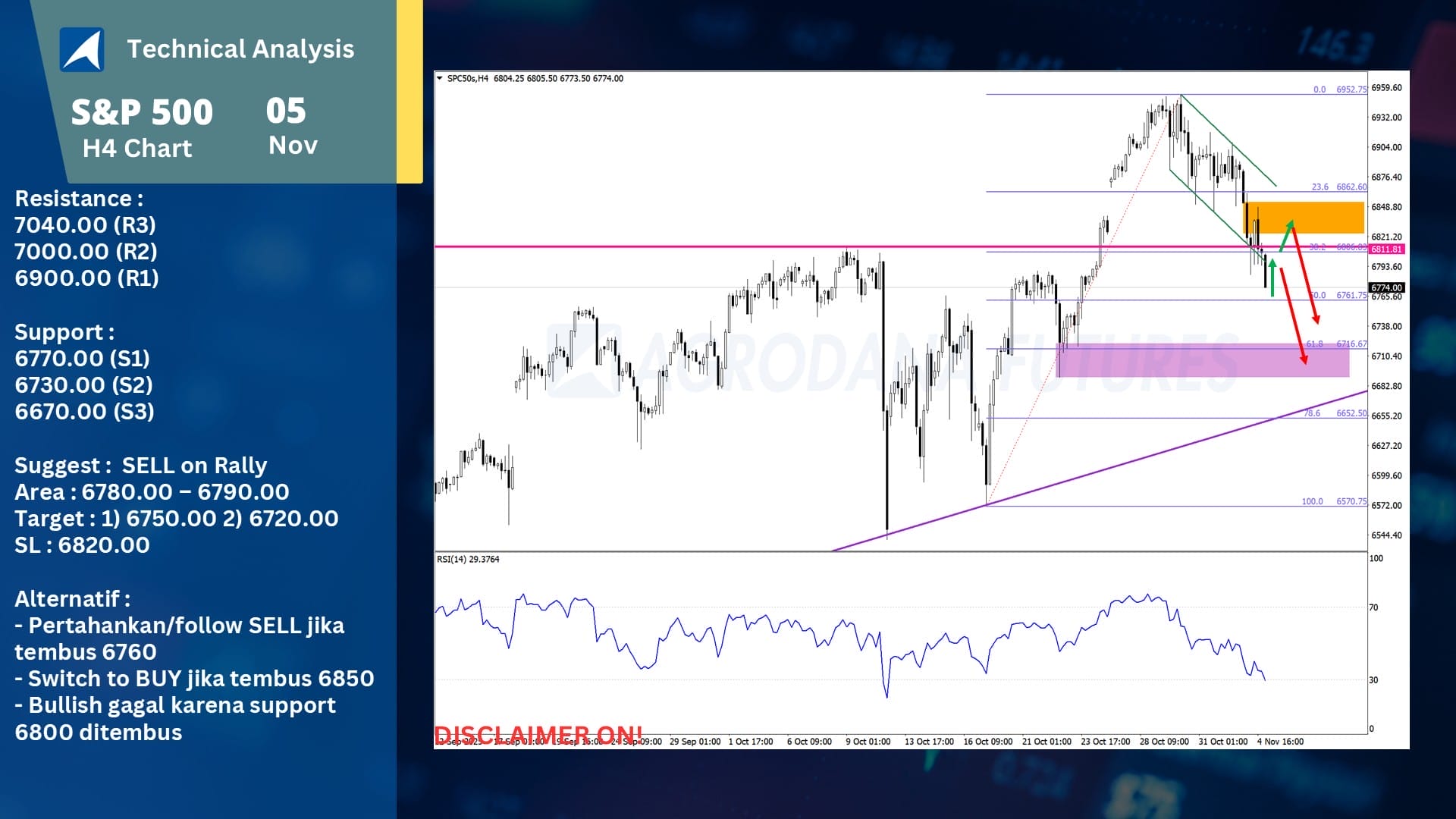 - Bearish lebih dominan jika tembus 6760 -> switch to SELL