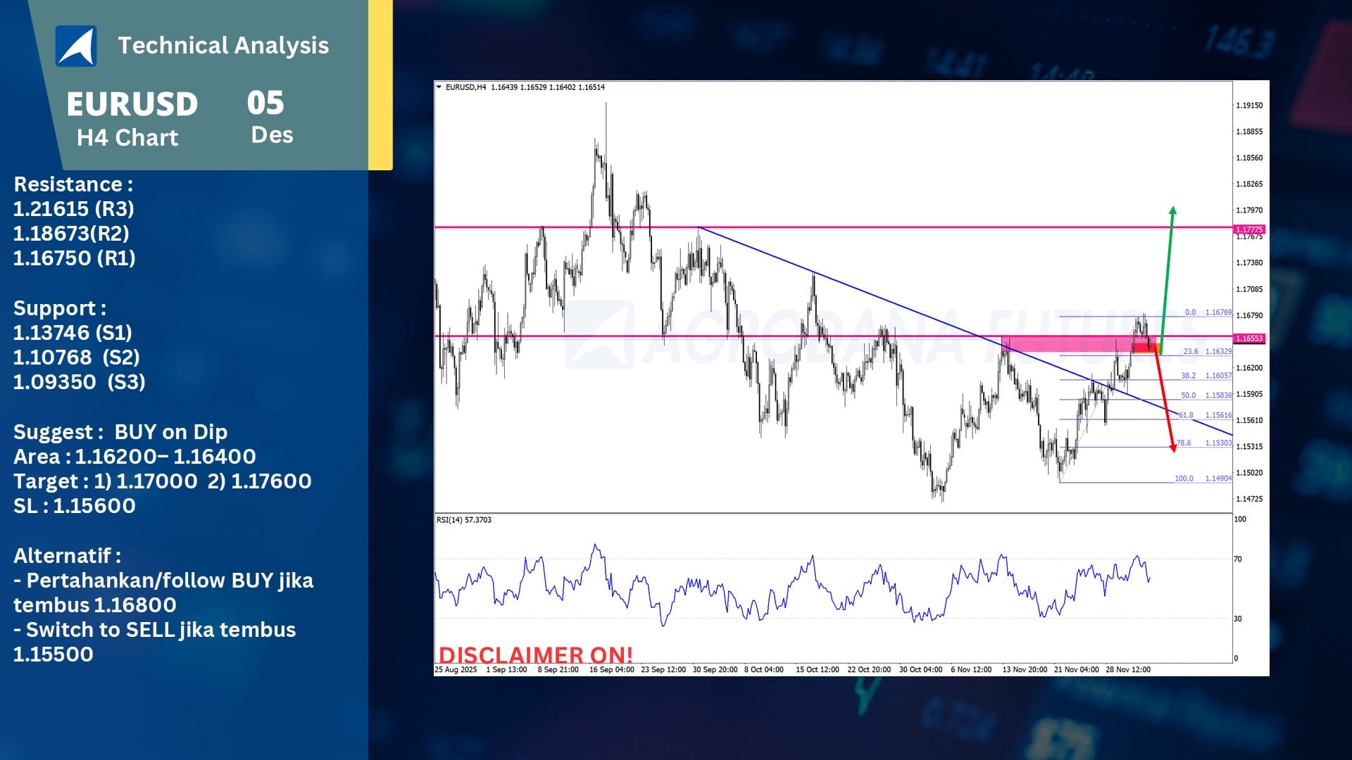 - Bullish lebih kuat jika tembus 1.16800 -> pertahankan BUY